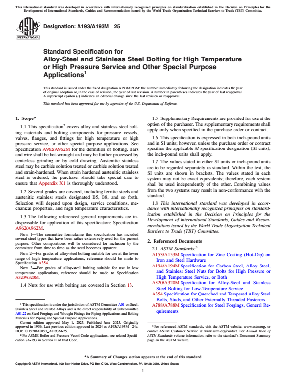 Standard Specification for Alloy-Steel and Stainless Steel Bolting for High Temperature or High Pressure Service and Other Special Purpose Applications 1